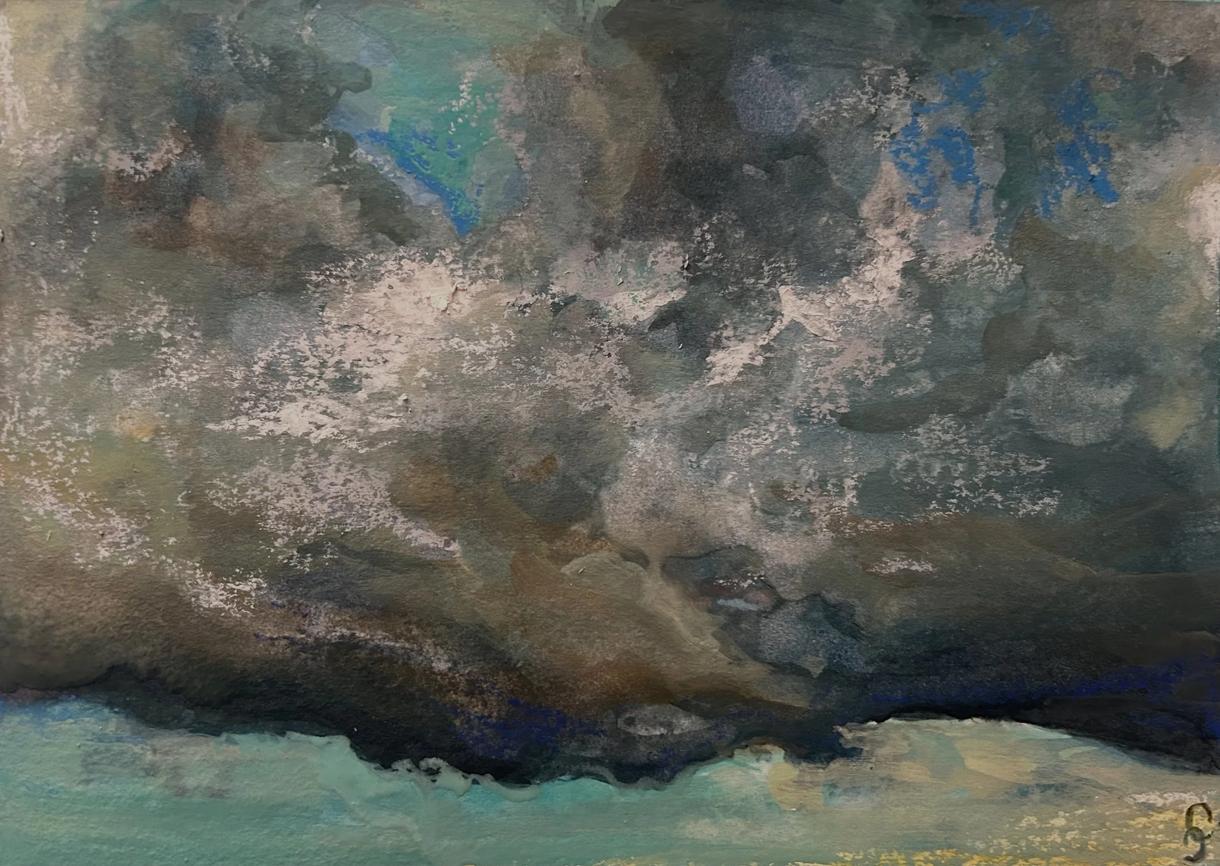 Ciel intense, Aquarelle et pastel gras sur petit papier (14,8x21cm), 2025